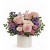 Soft pastel tones and graceful blooms come together in this charming bouquet, arranged in a distinctive mosaic cylinder vase. A perfect choice for adding elegance to celebrations or brightening everyday spaces.