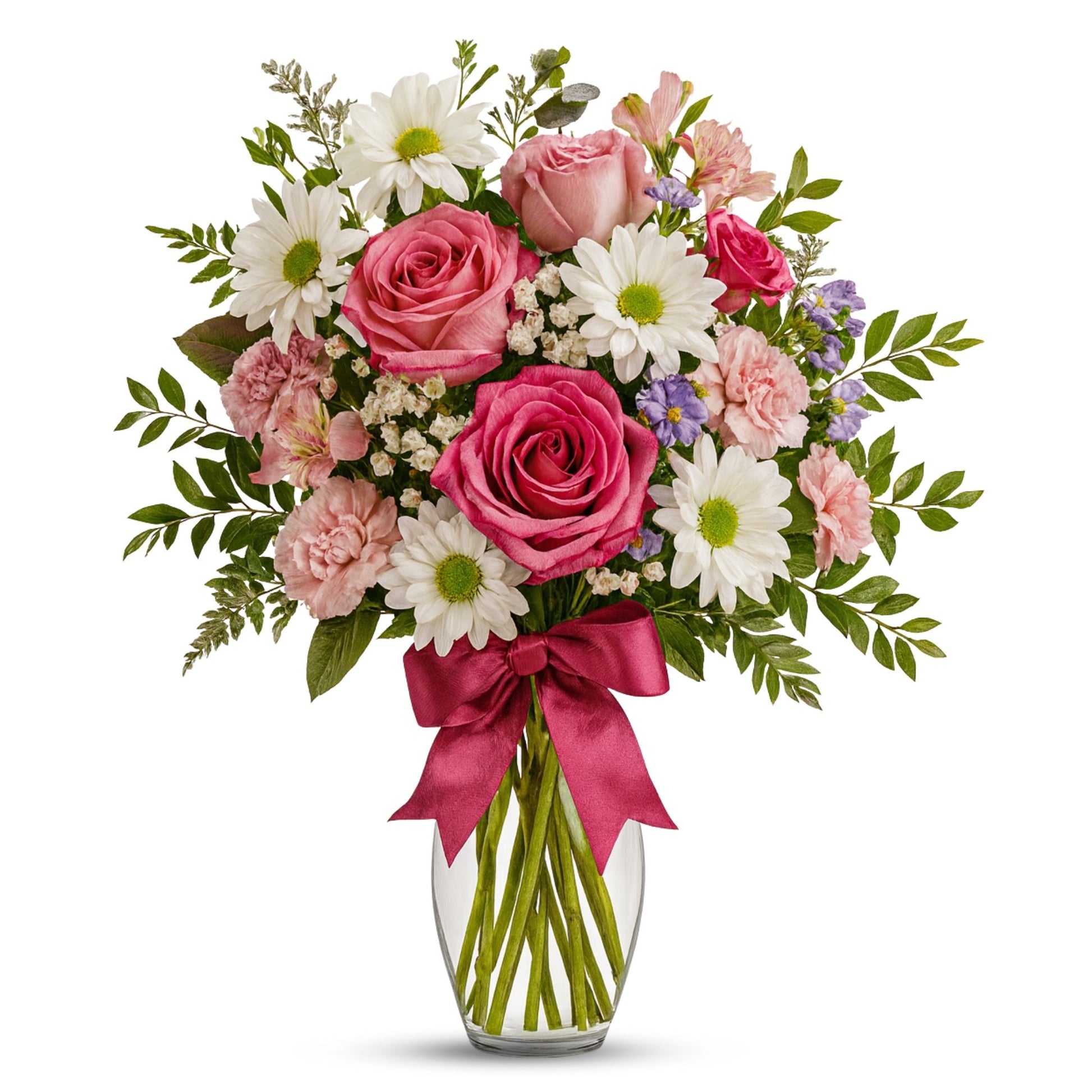 A soft and thoughtful blend of pinks, whites, greens, and purples creates a bouquet that’s both versatile and full of grace. Perfect for expressing love, offering comfort, or simply brightening someone’s day with elegance and warmth.