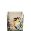 A decorative square glass vase featuring a soft butterfly and botanical design, perfect for romantic and garden-style arrangements.